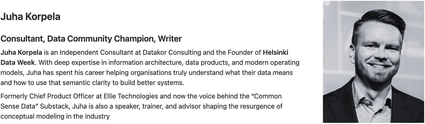This piece is a community contribution from Juha Korpela, Independent Consultant and Founder of Helsinki Data Week, a community-first data conference. With deep expertise in information architecture, data products, and modern operating models, Juha has spent his career helping organisations truly understand what their data means and how to use that semantic clarity to build better systems.