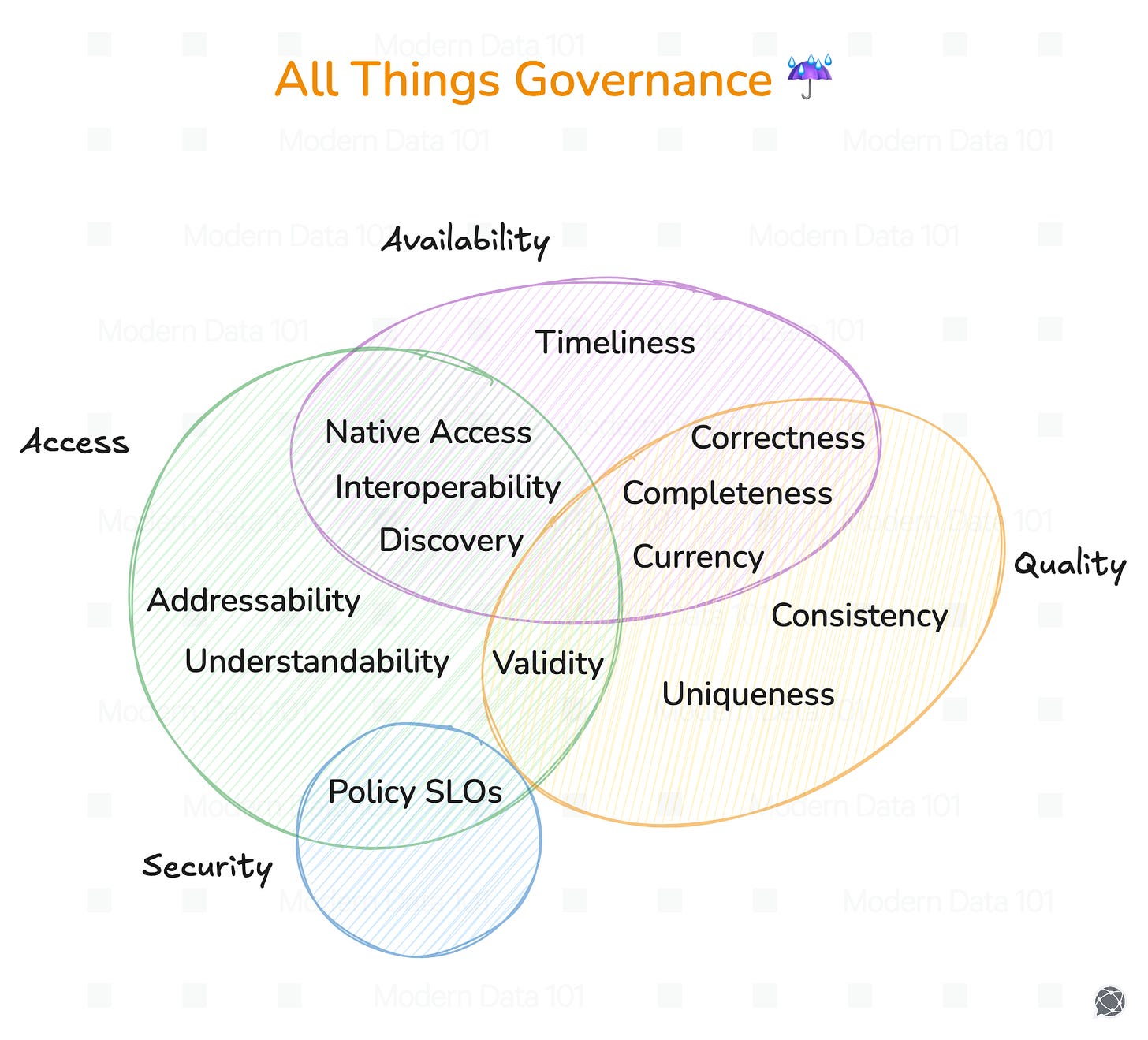 Governance also consists of several factors like security controls, privacy safeguards and implementing policies. Meaning it is not a separate concern, but instead, something that contributes to access management and value-enablement.