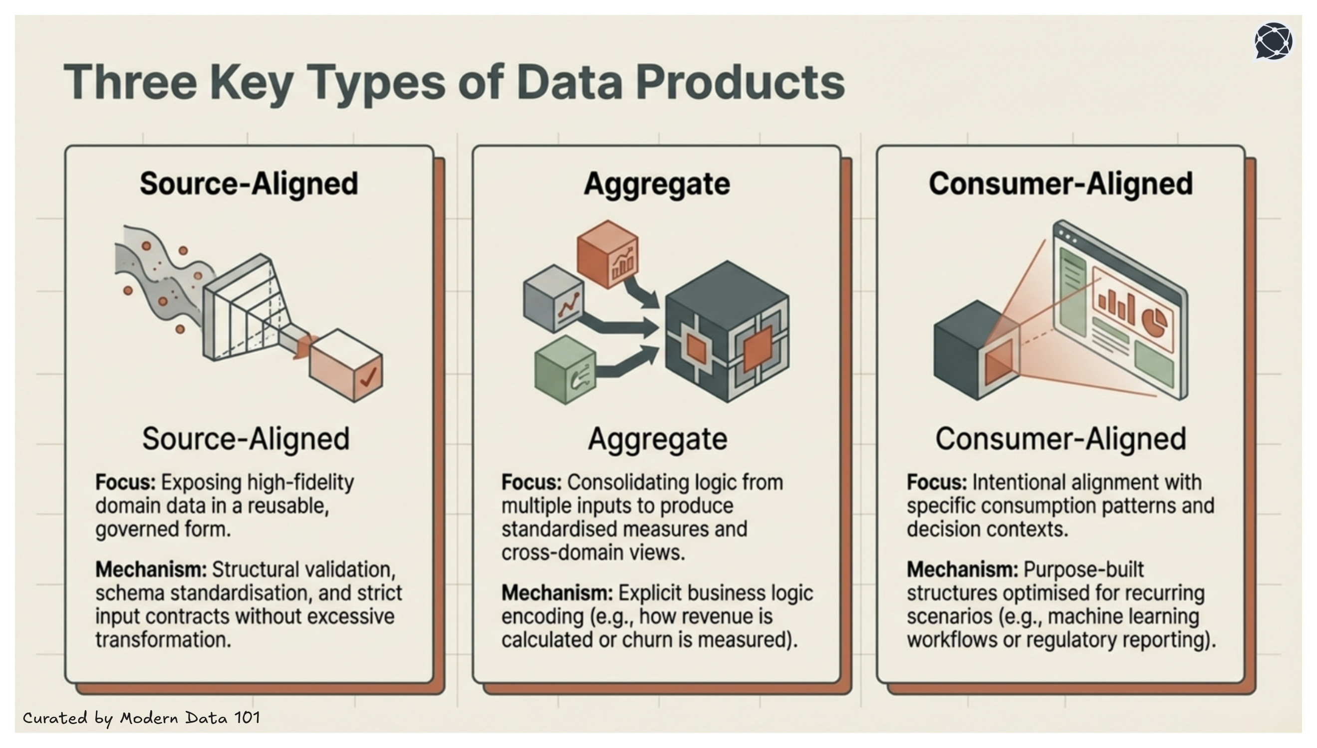 While closer to business outcomes, they still rely on stable upstream source-aligned and aggregate products to maintain consistency.