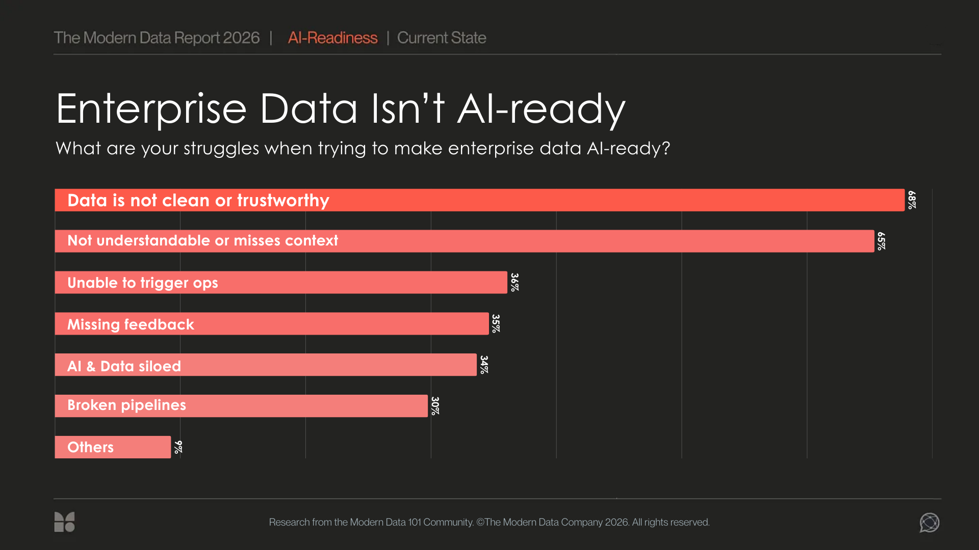 The Modern Data Report reveals how enterprise data is nowhere near AI-ready. AI cannot reason over data that humans themselves cannot rely on.