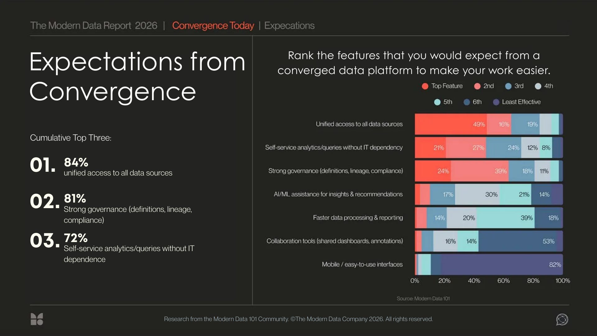 AI demands coherence through convergence of the data stack, and these are the industry’s expectations from convergence (ranked among the top three):